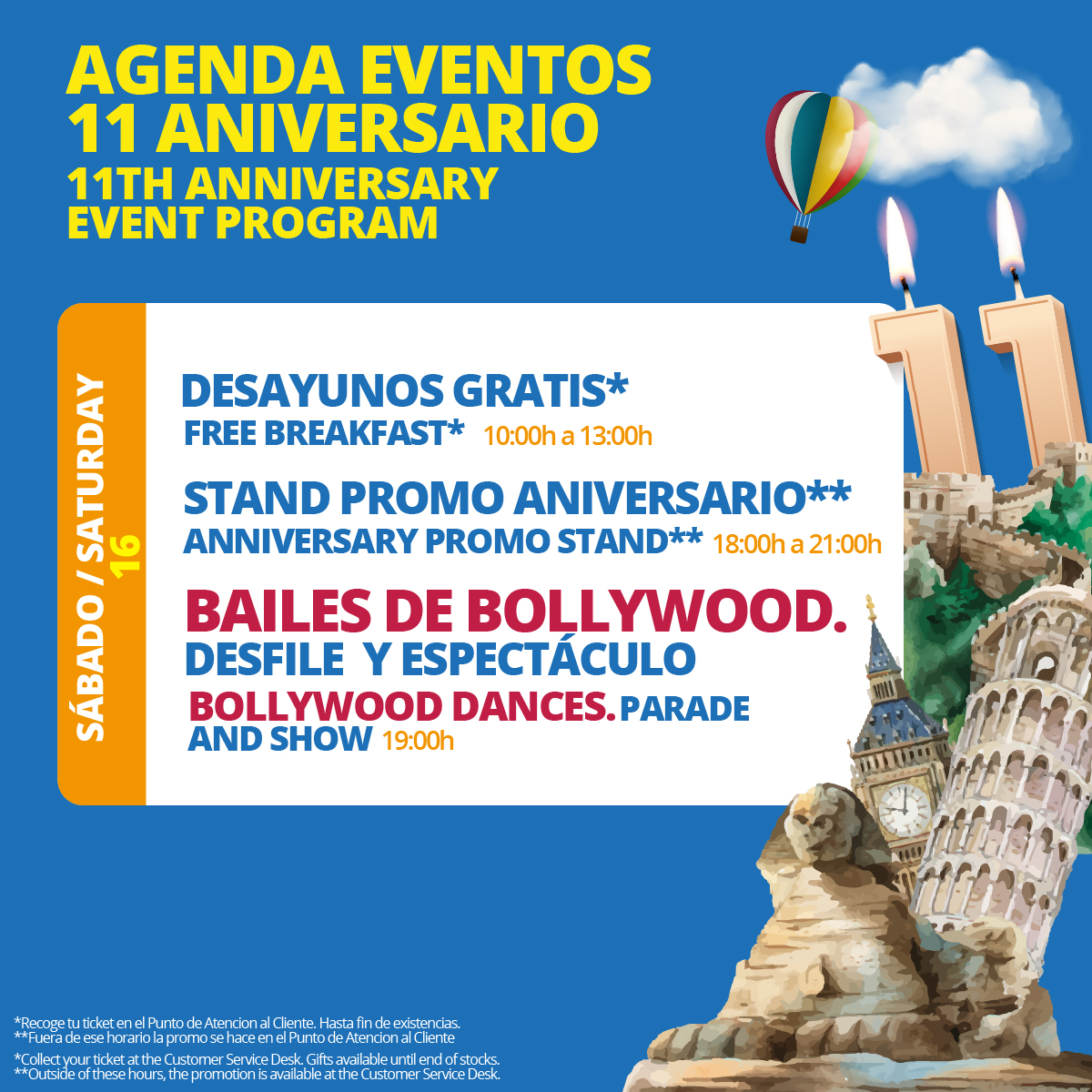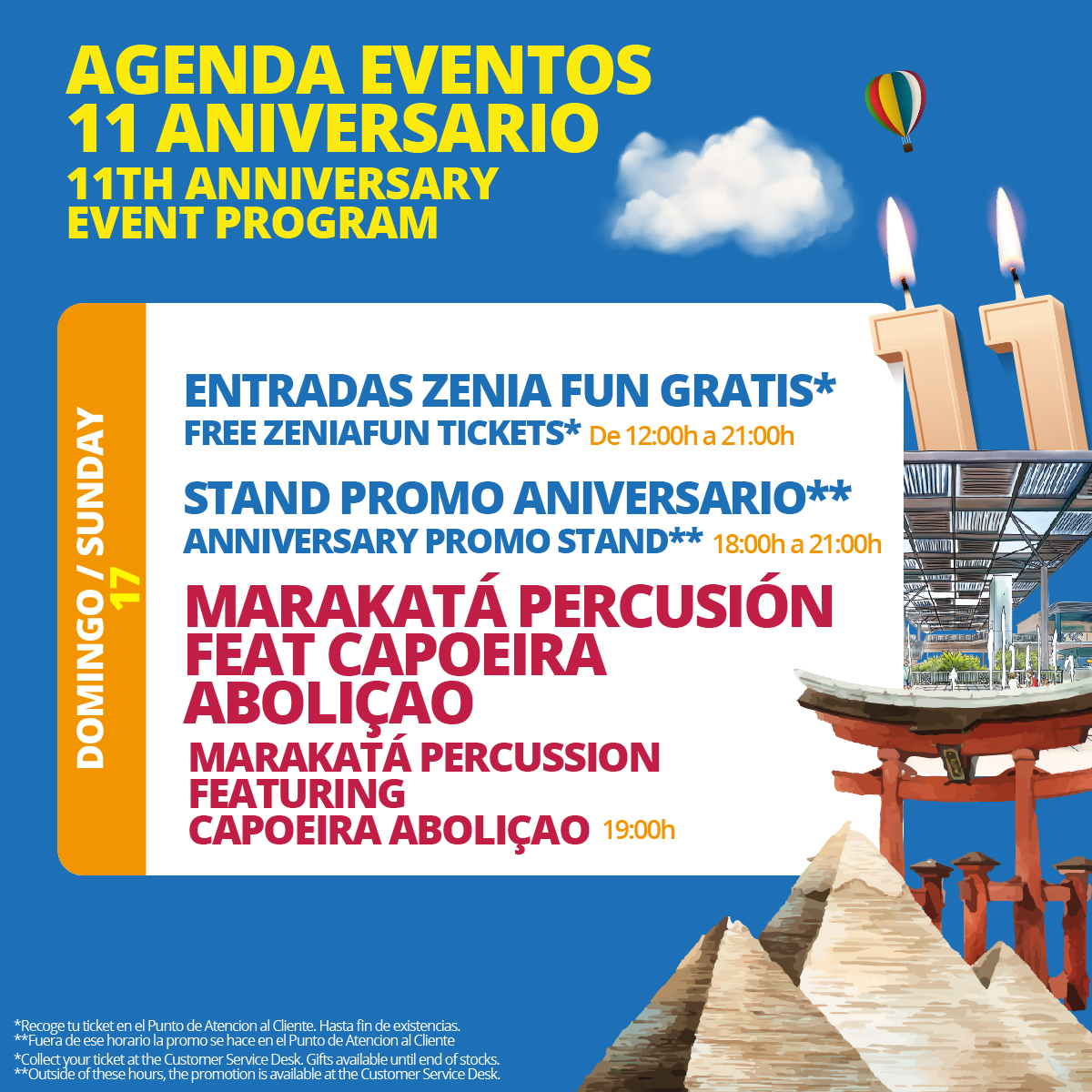 *Por ser o hacerse socio del club de fidelidad.¡Esto va a ser ÉPICO! Marca estas fechas en tu calendario y asegúrate de estar aquí para la mejor fiesta del año.¡Nos vemos en la pista de baile y en todas las actividades para celebrar nuestros 11 años de éxito! ¡Prepárate para pasarlo genial!https://zeniaboulevard.es/eventos